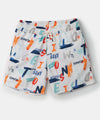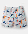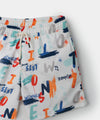 Bermuda de playa para niño de la talla 4 a la 16, color marfil con estampado de letras de colores. ¡Una prenda ideal para días de playa y piscina!