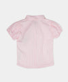 Una prenda delicada y encantadora, perfecta para darle a tu pequeña un look fresco, dulce y cómodo en cualquier ocasión, su diseño con cuello tipo bebé y suaves rayitas rosadas crea un estilo clásico y tierno, ideal para combinar con faldas, shorts o jeans.
