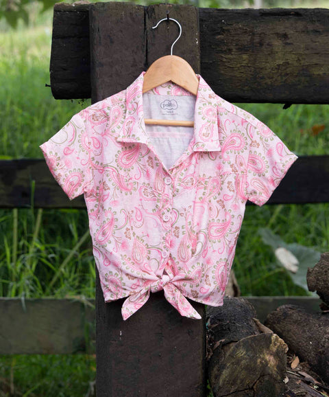 Camisa Estampada Manga Corta Para Niña Color Rosa Pálido