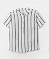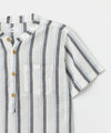 Camisa manga corta para niño de la talla 4 a la 16, color blanco con rayas azules. Ideal para días casuales y divertidos. Úsala con jeans o bermudas..