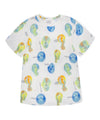 Esta camiseta es perfecta para acompañar el día a día de los niños con comodidad y estilo. Su tejido suave y fresco permite libertad de movimiento, ideal para jugar, explorar o disfrutar momentos en casa. El estampado de caritas coloridas le da un toque alegre y moderno, aportando diversión a cada look.