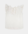 - Mangas raglán con recogido y detalle de bolillo blanco que resalta el diseño.