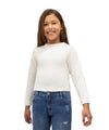 Camiseta fondo entero manga larga para niña de la talla 4 a la 16, color marfil. Ideal para usar en momentos especiales. Úsala con pantalones, shorts o faldas.