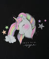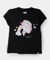 Camiseta manga corta para bebé niña de la talla 18M a la 5T, color negro, licra Vanessa y estampado de unicornio animado. ¡Luce increíble con tus looks Polito!