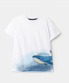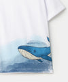 Camiseta para bebé niño en tela suave color blanco con estampado de ballena