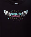Camiseta manga corta para niña de la talla 4 a la 16, color negro. Ideal para días casuales y divertidos. Úsala con jeans, shorts o faldas.