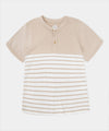 Una camiseta pensada para acompañar los días más tranquilos y llenos de estilo. Su diseño con cuello tipo Henley y suaves tonos neutros la convierte en una prenda versátil, perfecta para combinar con shorts, jeans o bermudas. Ideal para disfrutar de momentos cómodos y con un toque de elegancia casual.