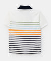 Camiseta tipo polo para niño de la talla 4 a la 16, en color marfil y estampado de rayas, con botones y cuello tejido. Ideal para días calurosos, divertidos y casuales. Úsala con jeans o bermudas.