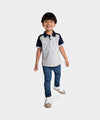 Camiseta tipo polo para bebé niño de la talla 2T a la 5T, color gris claro. Ideal para acompañar en los momentos mas especiales. Úsala con jeans o bermudas Polito.