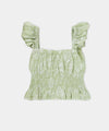 - Blusa con escote recogido y boleros delicados para un look romántico.