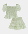 Con este conjunto inspirado en la frescura del campo, las pequeñas podrán disfrutar de estilo y comodidad en cualquier ocasión. Ideal para climas cálidos, su diseño favorece la movilidad y aporta un toque coqueto.