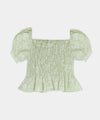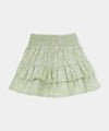 - Falda con pretina resortada y boleros recogidos para un efecto fluido.