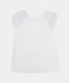 - Blusa en licra blanca con boleros tejidos que aportan un toque romántico y delicado.