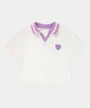 - Cuello tipo polo con perilla en color lila y bandas en color rosado y blanco