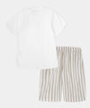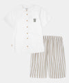 Un conjunto pensado para acompañar a los niños en días especiales o de paseo, combinando estilo clásico con la frescura del verano. Su diseño limpio y tonos tierra crean un look elegante y natural, ideal para cualquier ocasión.