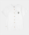 - Camisa con cuello mao, botones frontales y detalle bordado en el pecho.