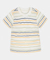 - Camiseta con diseño de rayas que aporta un look divertido y moderno.