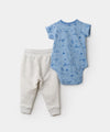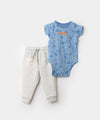 Conjunto de body y pantalón deportivo para recién nacido de la talla 06M a la 09M, color azul con beige. Ideal para jugar y explorar. Úsalo con tus accesorios favoritos.