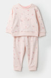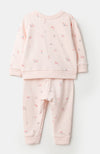 Conjunto de buzo y jogger para recién nacida en burda color rosado claro con estampado de flores