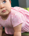 Este conjunto es perfecto para acompañar a tu bebé en sus días llenos de movimiento y ternura, su diseño suave, delicado y cómodo abraza la piel con ligereza, permitiendo que juegue, explore y descanse con total libertad, ideal para usar en casa o en salidas casuales, con un estilo dulce y práctico que combina a la perfección.