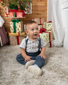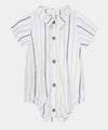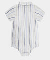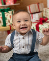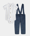 Un conjunto encantador que combina la elegancia clásica con la comodidad que tu bebé necesita. El body camisero en suave tejido blanco con rayas azuladas se ajusta con delicadeza al cuerpo, mientras el pantalón con cargaderas y pretina resortada aporta un toque tierno y sofisticado. Perfecto para celebraciones o momentos especiales, manteniendo siempre la libertad de movimiento.