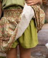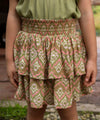 Falda short estampada para bebe niña de la talla 24M a 5T, color verde aceituna. Ideal para sentirte cómoda y hermosa. Úsala con camisetas o blusas Polito.