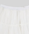 - Capas de tul con efecto plisado que aportan volumen y ligereza.