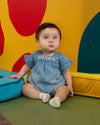 Este mameluco combina un estilo encantador con toda la suavidad y libertad que tu bebé necesita para explorar el mundo, su color índigo y los delicados bordados le dan un toque muy especial, mientras su diseño cómodo lo convierte en una prenda perfecta para jugar, dormir o acompañarla en cualquier día lleno de descubrimientos.