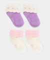 Este pack de medias es perfecto para acompañar los primeros pasos con suavidad y ternura. Con colores delicados en tonos lila y rosa, cada par tiene un diseño encantador con detalles de corazones y borde ondulado que añaden un toque dulce al look diario de tu bebé. Su tejido suave y elástico brinda comodidad y un ajuste ideal durante todo el día.