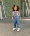 Overol largo para bebé niña de la talla 24M a la 5T, color índigo tono medio. Ideal para estar cómoda y lucir a la moda. Úsalo con tus accesorios favoritos Polito.