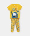 Pijama manga corta y pantalón para bebé niño en talla 24M a la 5T, color amarillo. Ideal para dormir y estar cómodo.