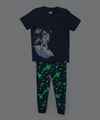 Pijama que alumbra manga corta para bebé niño en talla 24M a la 5T, color azul oscuro. Ideal para dormir y estar cómodo.