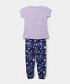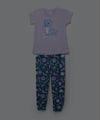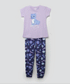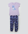 Pijama que alumbra manga corta y pantalón para niña en talla 4 a la 16, color lila. Ideal para dormir y estar cómoda.