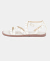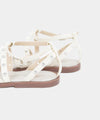 Ligera, moderna y versátil. Esta sandalia en tono hueso combina tiras delgadas decoradas con taches metálicos que añaden un toque chic sin perder comodidad. Su diseño plano y cierre con hebilla aseguran un calce perfecto para acompañarte en días soleados y looks casuales.