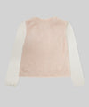 - Chaleco en tono rosado con textura sutil que enriquece el look.