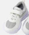Los nuevos tenis combinan estilo y comodidad para acompañar cada una de las aventuras del día. Su diseño moderno en tonos blanco y plateado añade un toque deportivo y versátil, perfecto para crear outfits frescos y llenos de movimiento.