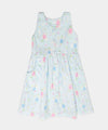 Un vestido fresco, alegre y lleno de color que acompaña a tu pequeña en sus días de juego, paseos y momentos especiales, su estampado floral y silueta ligera crean un look encantador y muy cómodo, perfecto para los días cálidos.