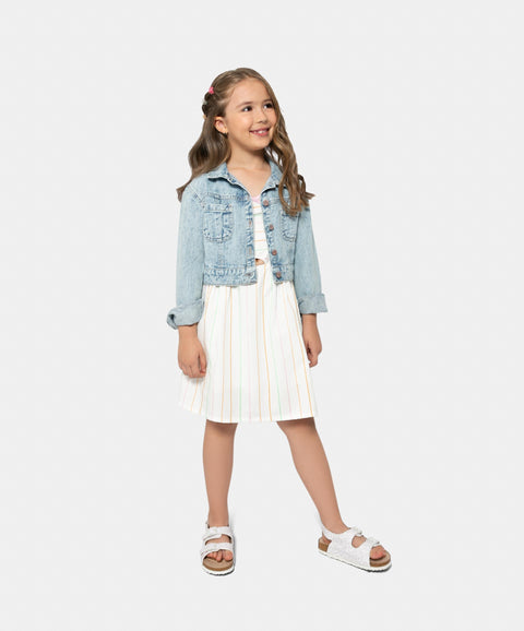 Vestido de tirantes para niña de la talla 4 a la 16, color marfil. ¡Ideal para crear momentos imborrables en tus días más especiales!. Úsalo con tus accesorios favoritos Polito....